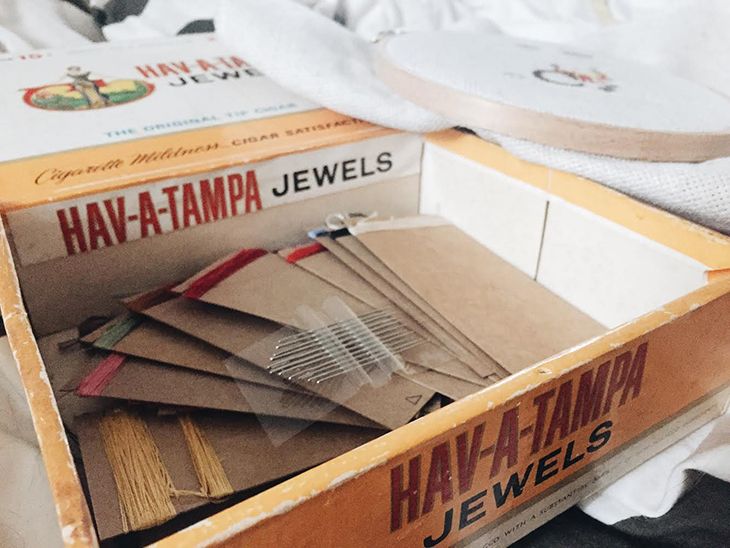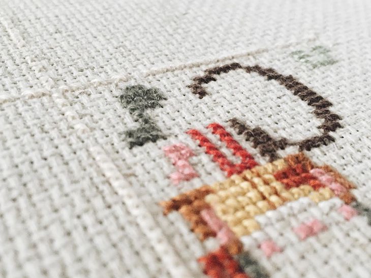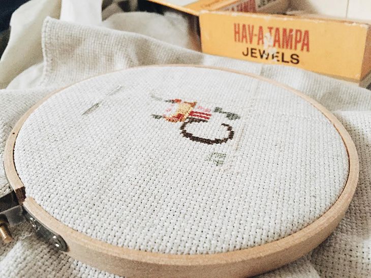 I have had my eye on The Frosted Pumpkin Stitchery ever since I saw a few friends on Instagram start posting their progress photos of their Halloween projects. When I saw people starting the new Christmas Cheer Sampler I knew this was my Christmas project. I had dabbled in cross-stitch as a kid. I never really finished any projects, but I did enjoy it. I found a gallon bag of DMC embroidery floss in my basement (probably picked up from an estate sale years ago) and was able to get almost every color I needed for this project out of the bag. The rest of the supplies, including the aida cloth, needles and hoop were just over $10 at my local craft store.